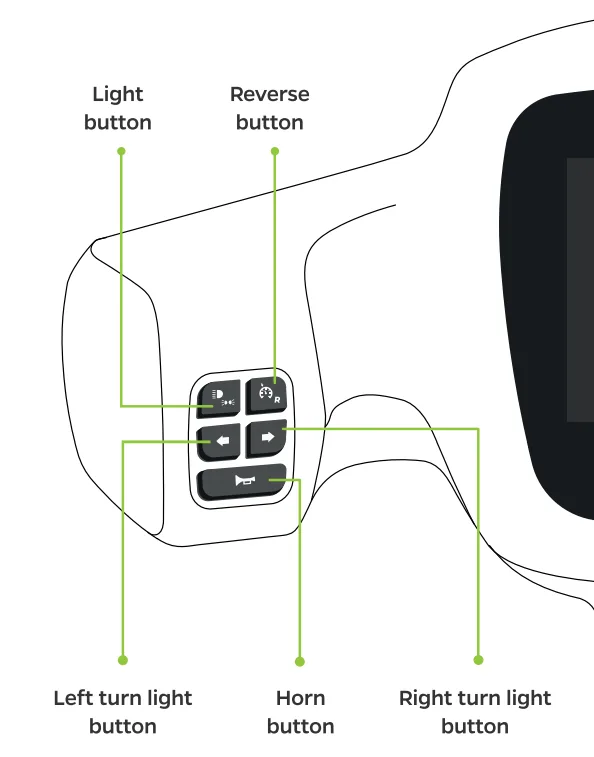 - Use the left control pad to operate indicators and horn.