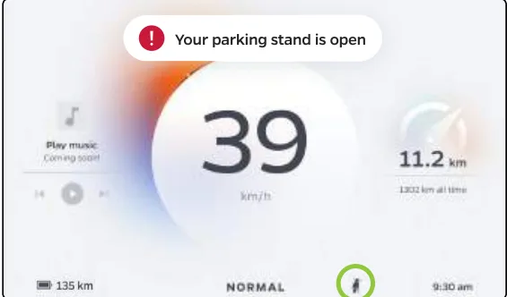 - Turn signal status and parking stand status.