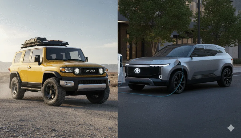 Important Clarification: Don’t confuse the electric SE with the other new Land Cruiser making headlines – the Land Cruiser FJ. Unveiled recently, the FJ is a smaller, gasoline-powered, retro-styled SUV launching in 2026, aimed at a different enthusiast segment. The SE is the electric future; the FJ is a nod to the past.